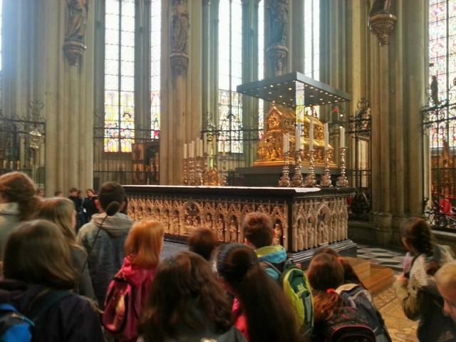 Anschließend durften wir am Dreikönigenschrein vorbeigehen, wie es die Pilger frühger gemacht hatten.