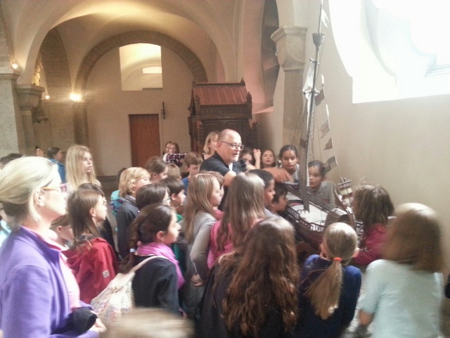 Danach gingen wir zur Kirche St. Ursula. Die Klasse 4b spielte uns die spannende Geschichte der heiligen Ursula vor. In der "Goldenen Kammer" staunten wir über die prachtvolle Gestaltung der Wände.